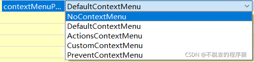 contextMenuPolicy属性是组件的快捷菜单策略,快捷菜单通过在部件上点击鼠标右键触发。设置参数说明如下所示: