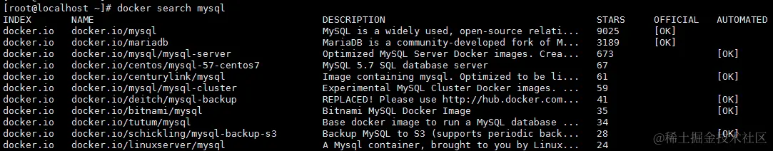 命令:docker search mysql