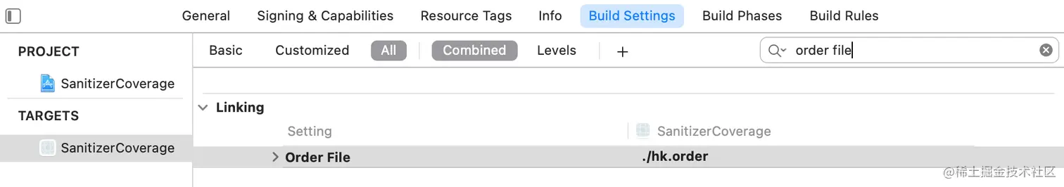 搭建测试项目,在Build Setting --> Other C Flags中,增加-fsanitize-coverage=trace-pc-guard的配置