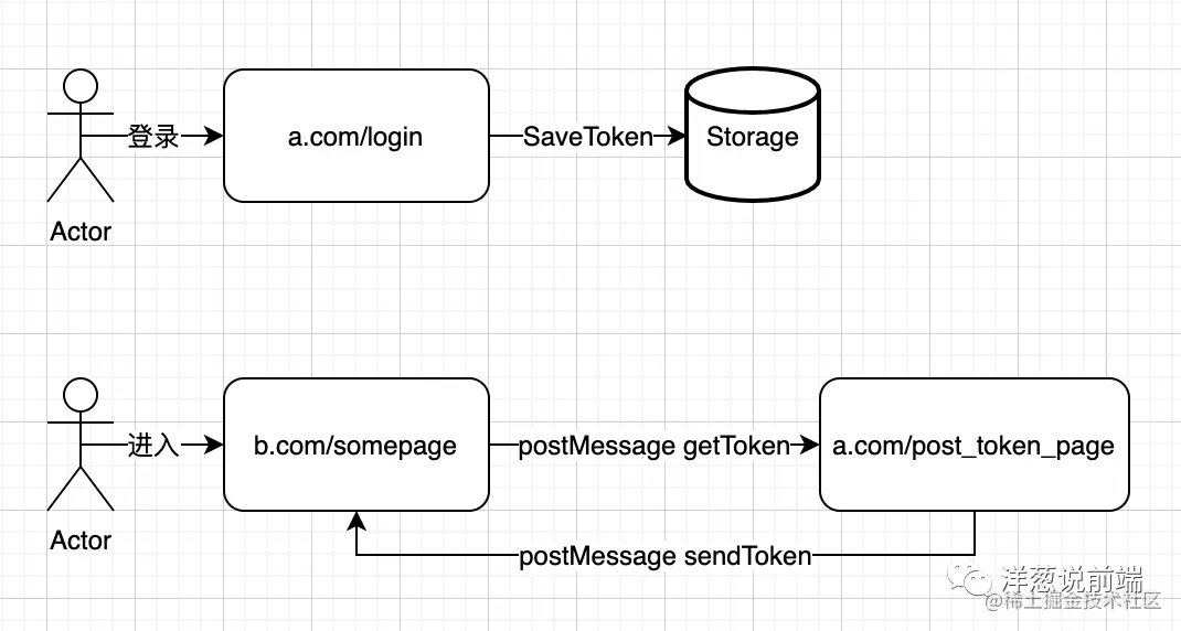 前端维护 Token 即所有 api 请求,需要网站自行处理 Token 携带问题,不像 cookie 浏览器帮你做了。这种跨站同步登录态的方式即主站登录后,保存 token 到缓存;进入子站后,通过 iframe 内嵌主站页面,postMessage 获取主站 Token,甚至可以不拷贝到子站,每次都从主站获取。