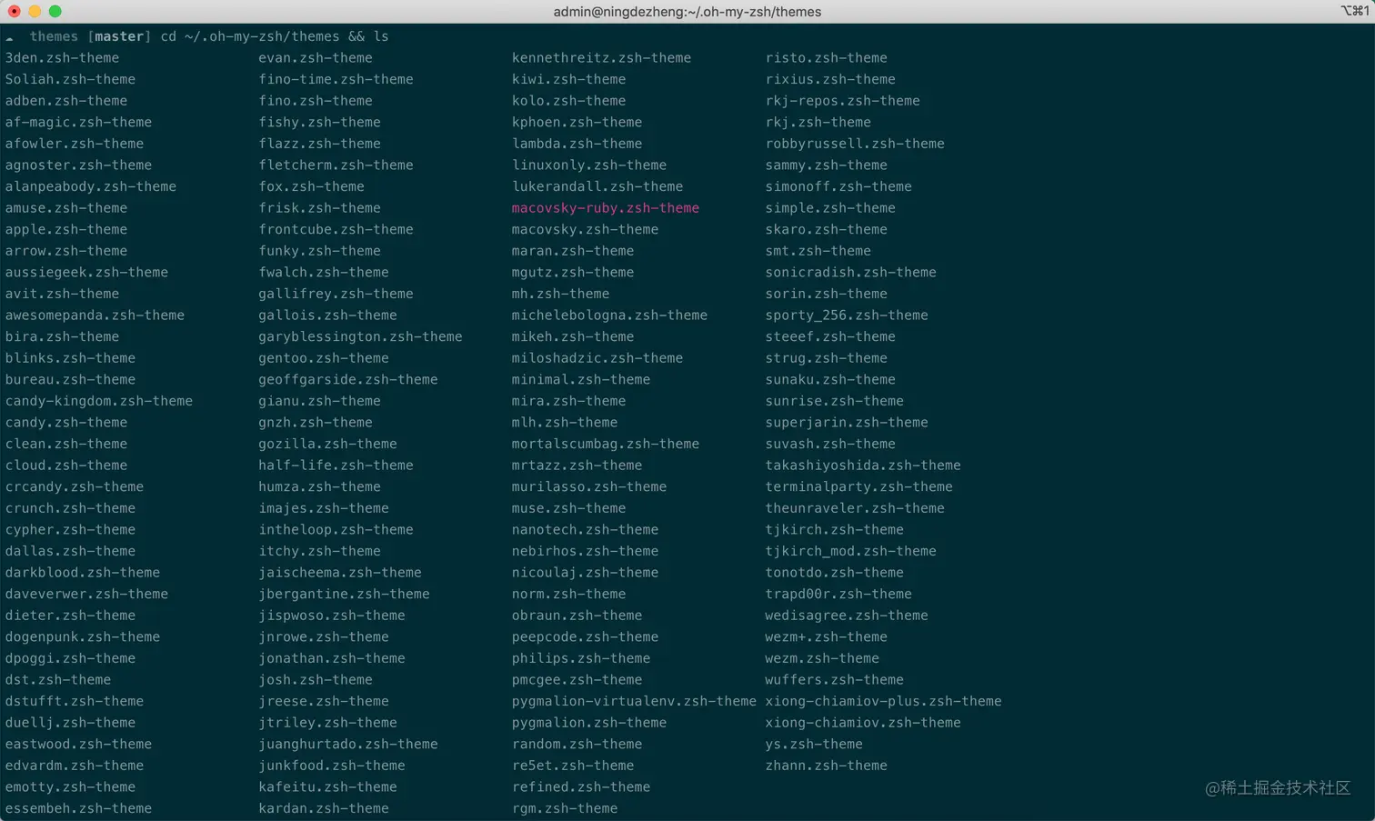 cd ~/.oh-my-zsh/themes && ls