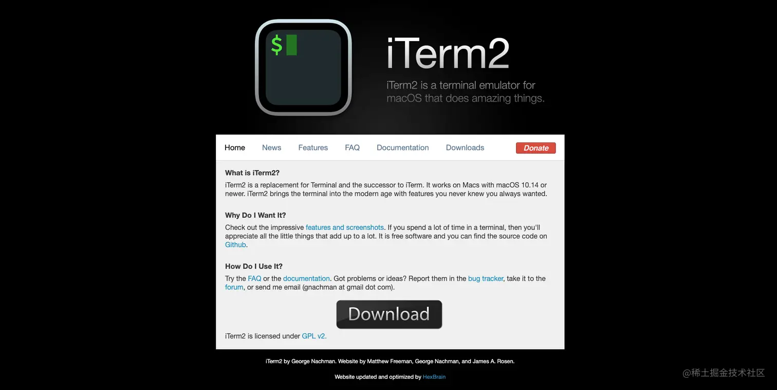 上面就是iTerm2的一个官网简介,官网链接,下面也就是官网首页的一个截图。