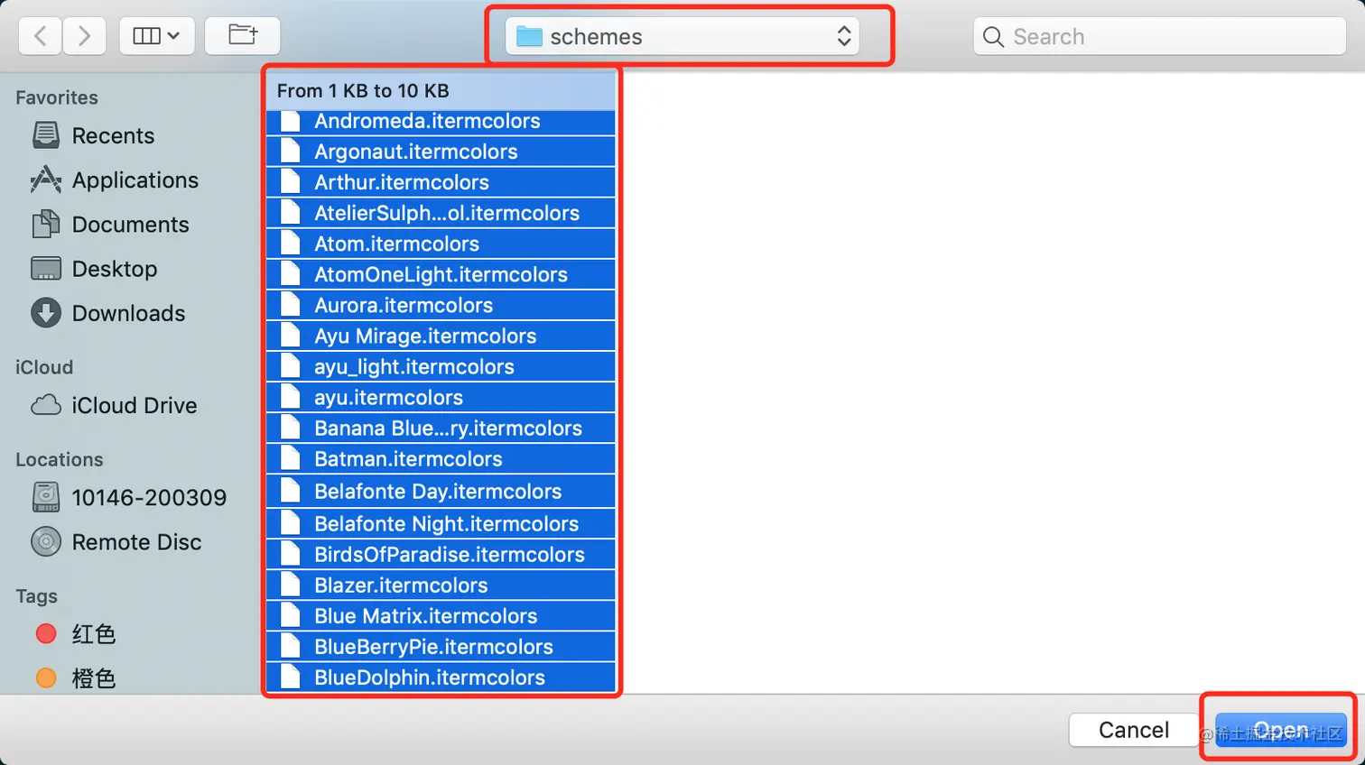 点击 “Import” 打开导入窗口,找到 schemes 文件夹, “Ctrl + A” 全选,然后 “Open”全部导入