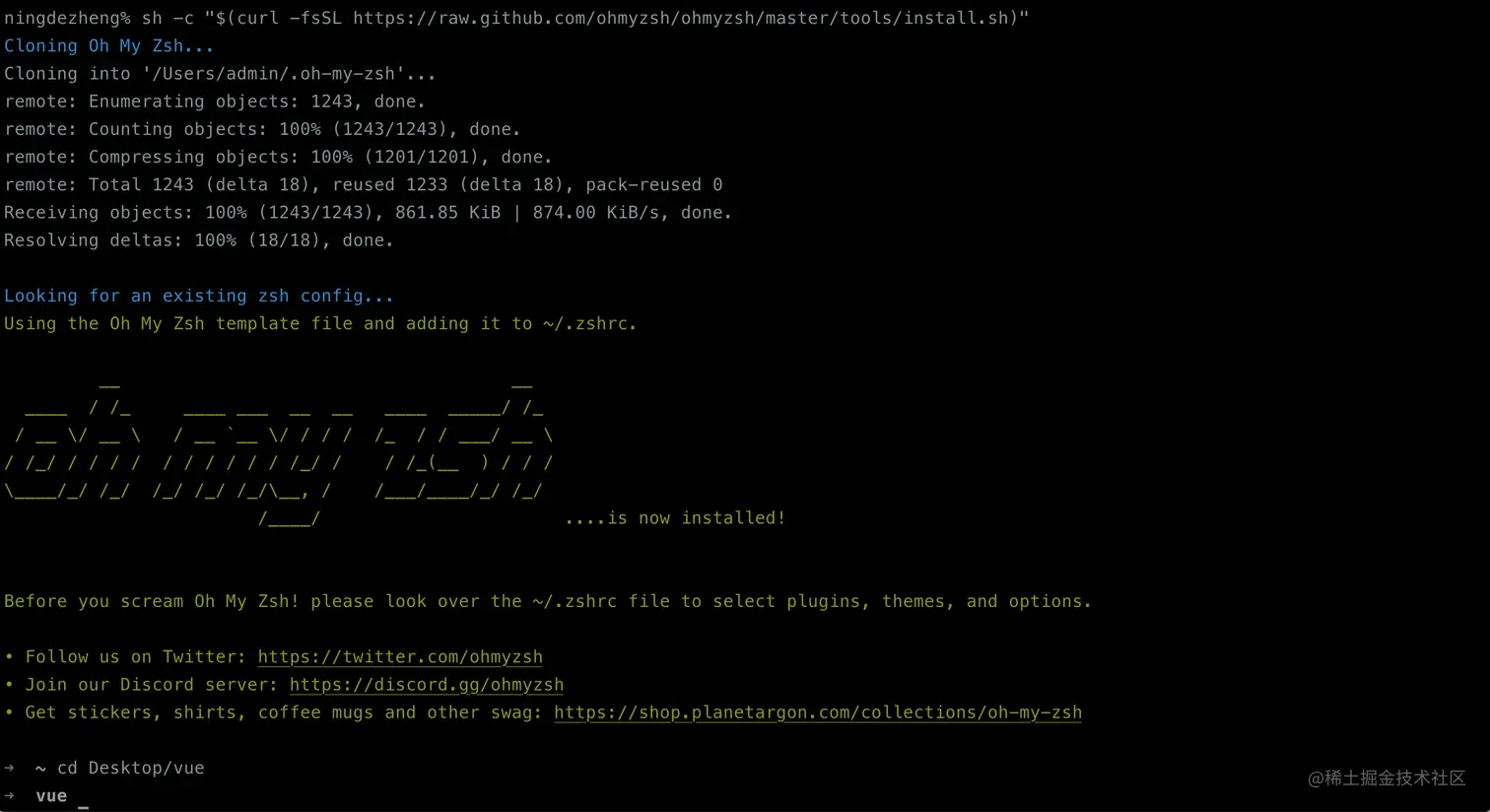 安装 oh-my-zsh 以后