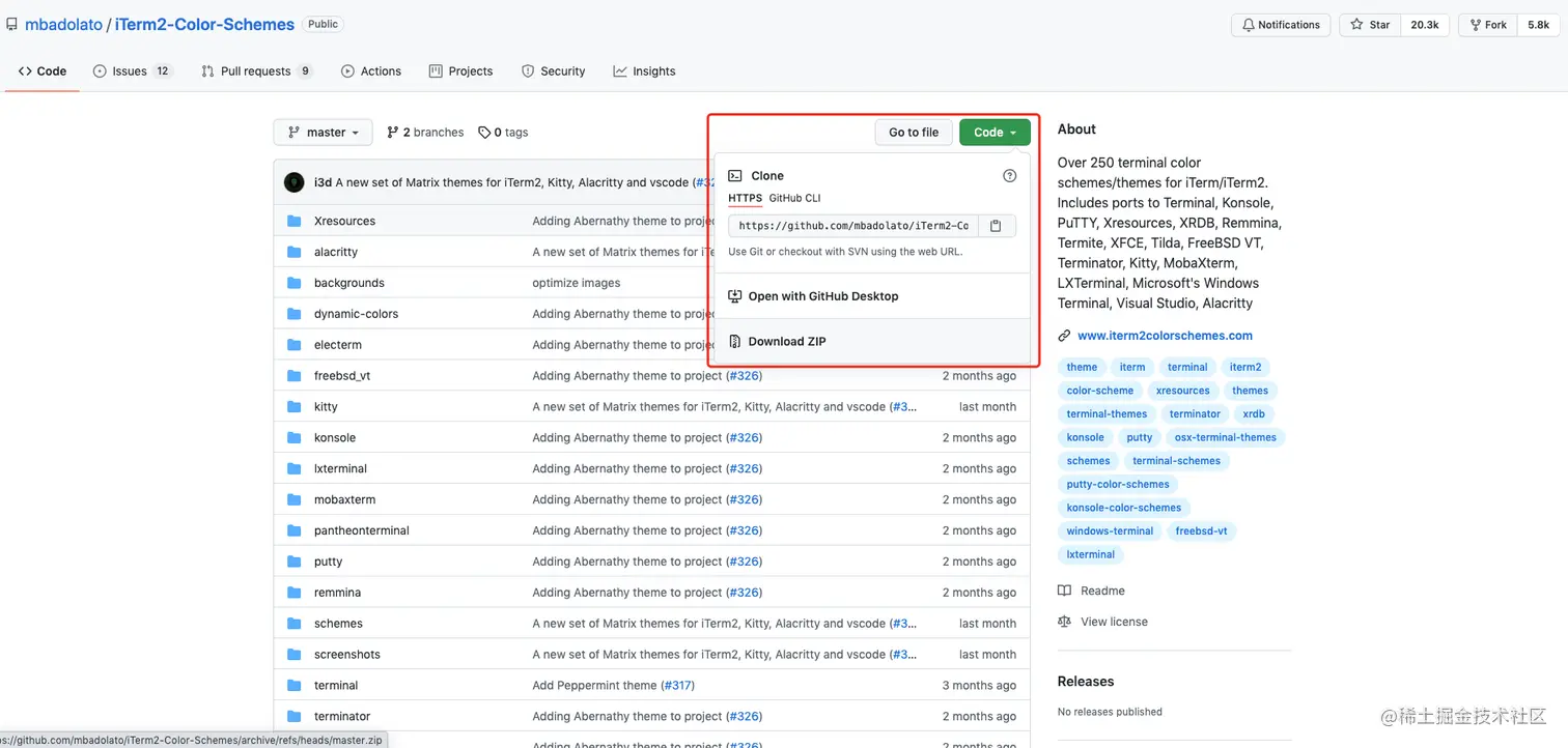 下面是一些iTerm2自带的主题,有的我觉得还是挺可爱的,可以进入下面网址看一下。选择一个你喜欢的 然后开始配置。