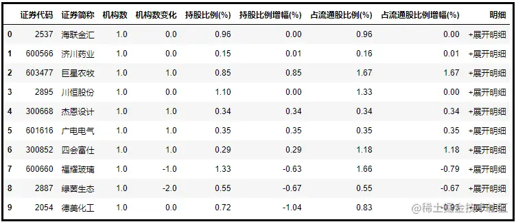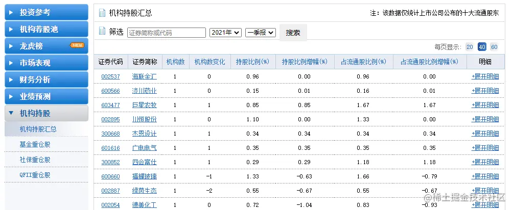 以新浪财经机构持股汇总数据为例: