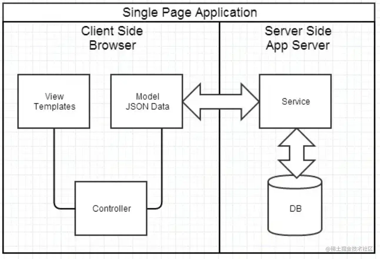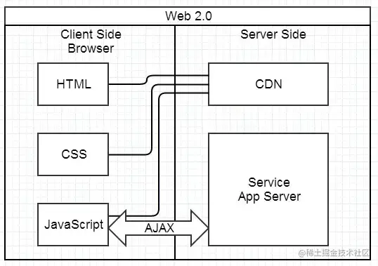 这种模式下,前后端的分工非常清晰,前后端的关键协作点是 Ajax 接口。看起来是如此美妙,但回过头来看看的话,这与 JSP 时代区别不大。复杂度从服务端的 JSP 里移到了浏览器的 JavaScript,浏览器端变得很复杂。类似 Spring MVC,这个时代开始出现浏览器端的分层架构: