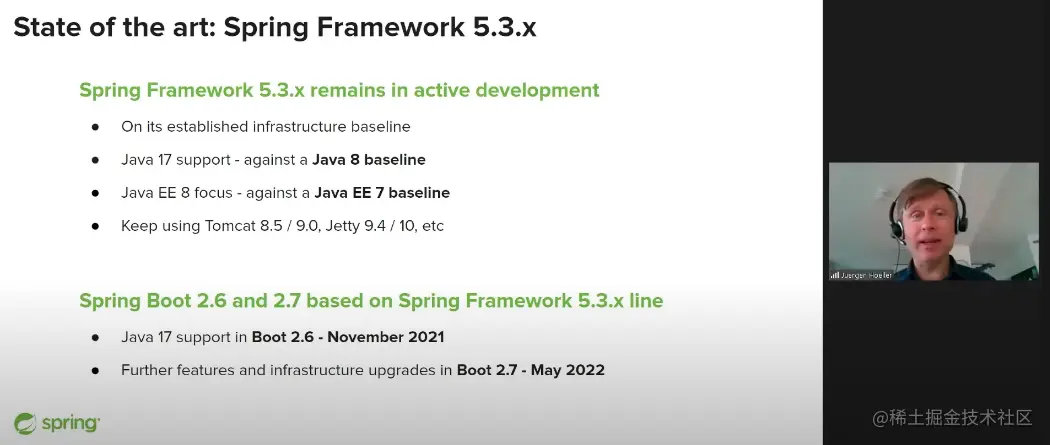 Spring Framework 5.3.x 和 Spring Boot 2.x 暂时仍在积极开发中,Spring Boot 2.6 和 Spring Boot 2.7 仍然会基于 Spring Framework 5.3.x。