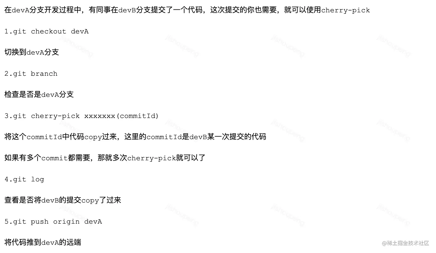 对于正常开发,git add 、git commit、git push 等命令行就足够了,但是如果在某些特殊情况下,比如在release包上修复了一个紧急bug,这次提交需要在master也提交合入,那么就可以用上git cherry-pick了。