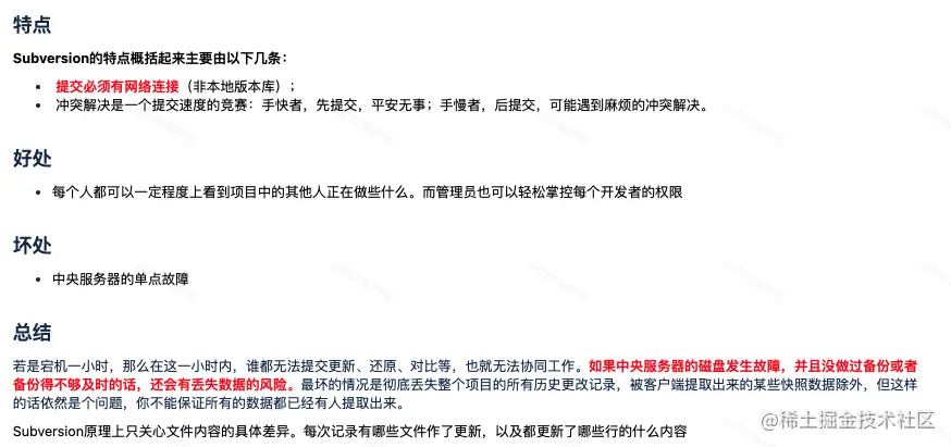除了Git之外,有些公司使用的是SVN,Subversion属于集中式的版本控制系统,集中式的版本控制系统都有一个单一的集中管理的服务器,保存所有文件的修订版本,而协同工作的人们都通过客户端连到这台服务器,取出最新的文件或者提交更新。
