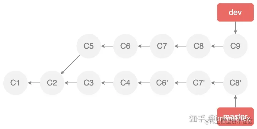 需要把dev的C6合并到master,只需在master分支上执行git cherry-pick C6,就会把dev分支的C6应用到master分支上并产生一个新的commitC6'。