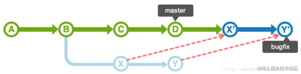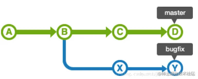 如下图所示,bugfix 分支是从 master 分支分叉出来的。