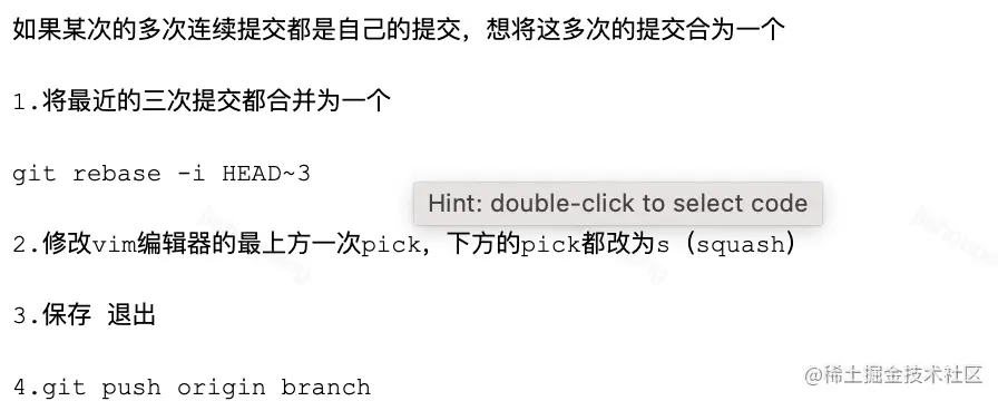 如果你在某个分支连续提交了多次,这个时候想将这些提交的结点合并成一个,使提交记录看起来简洁一些,那么git rebase HEAD i就是一个很好的命令