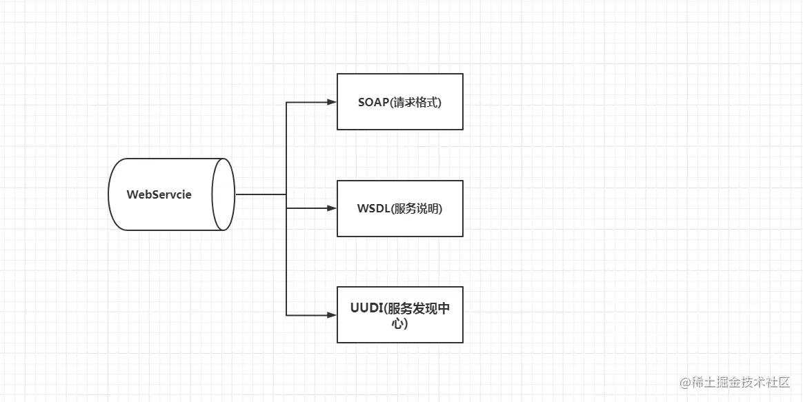 这个主从式架构似乎有点拗口,那看到Client-Server没,改为客户端-服务端模式是不是更容易理解呢? 这段描述中我们可以提炼出来的一个关键点就是根据SOAP协议传递XML格式消息。这里有一个陌生的词SOAP。同时SOAP也是WebService四大组件之一: