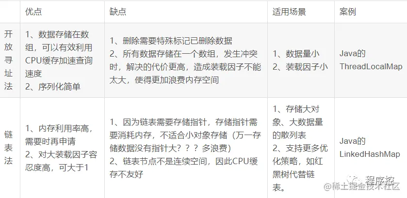 开放寻址:核心思想是如果出现了散列冲突,我们就重新探测一个空闲的位置,开放寻址法解决方案有线性探测法、二次探测、双重散列等方案。