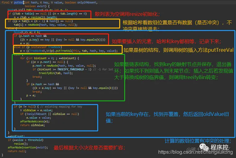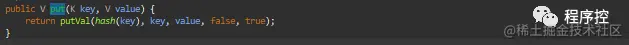 这里直接将key的哈希值返回不就好了, 为什么还要做异或运算?我们进入putVal()函数看: