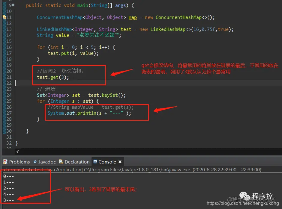 接着,我们来测试一下以访问顺序来进行插入和遍历