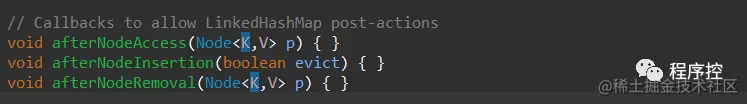 一个removeEldestEntry()方法,重写它可以删除最久未被使用的元素。一个是afterNodeInsertion()方法,新增时判断是否需要删除最久未被使用的元素。