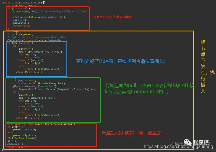 我们来看看TreeMap的核心put方法,读懂了这个就可以了解TreeMap的精髓了~