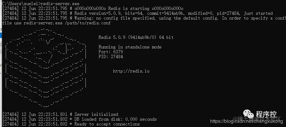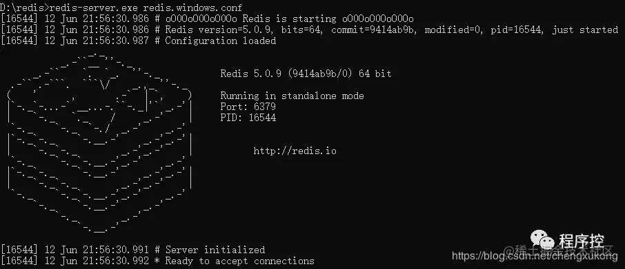 当我们看到这个画面的时候,代表redis的一个端口号为**6379(默认端口号)**的服务端已经成功启动了。