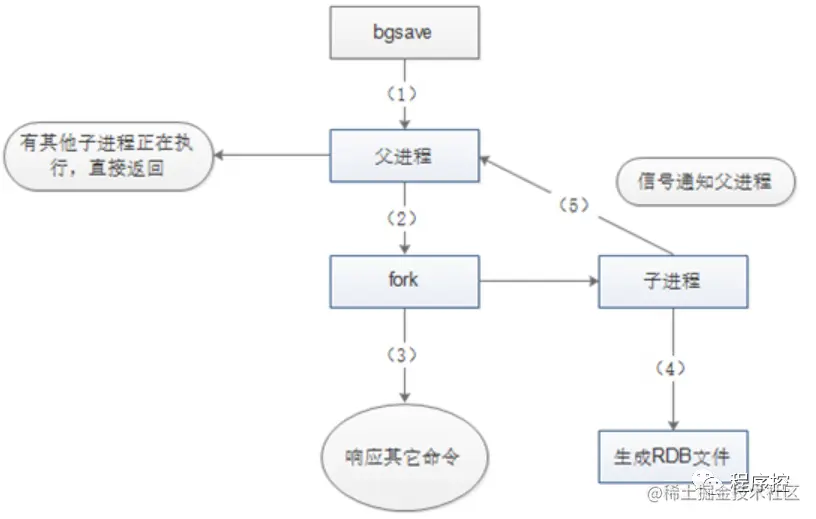bgsave()命令会创建一个子进程,由子进程来负责创建RDB文件,父进程则继续处理请求
