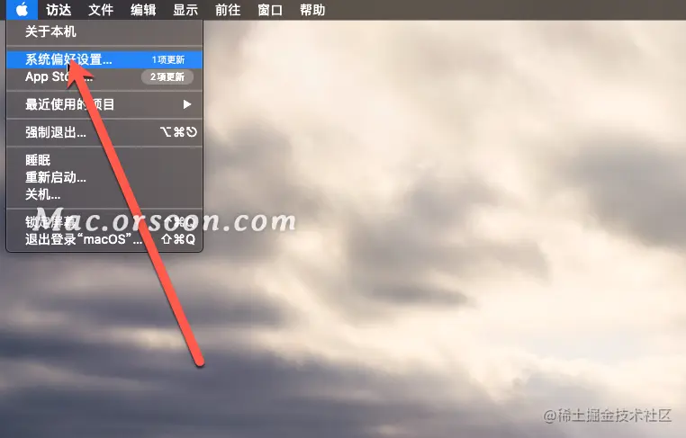 1.单击Mac屏幕左上角的Apple徽标。