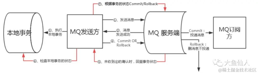 RocketMQ的机制就是先给Broker发送事务消息,也就是半消息,半消息指的是这个消息对消费者来说不可见,然后发送成功后,发送之后会继续执行本地事务