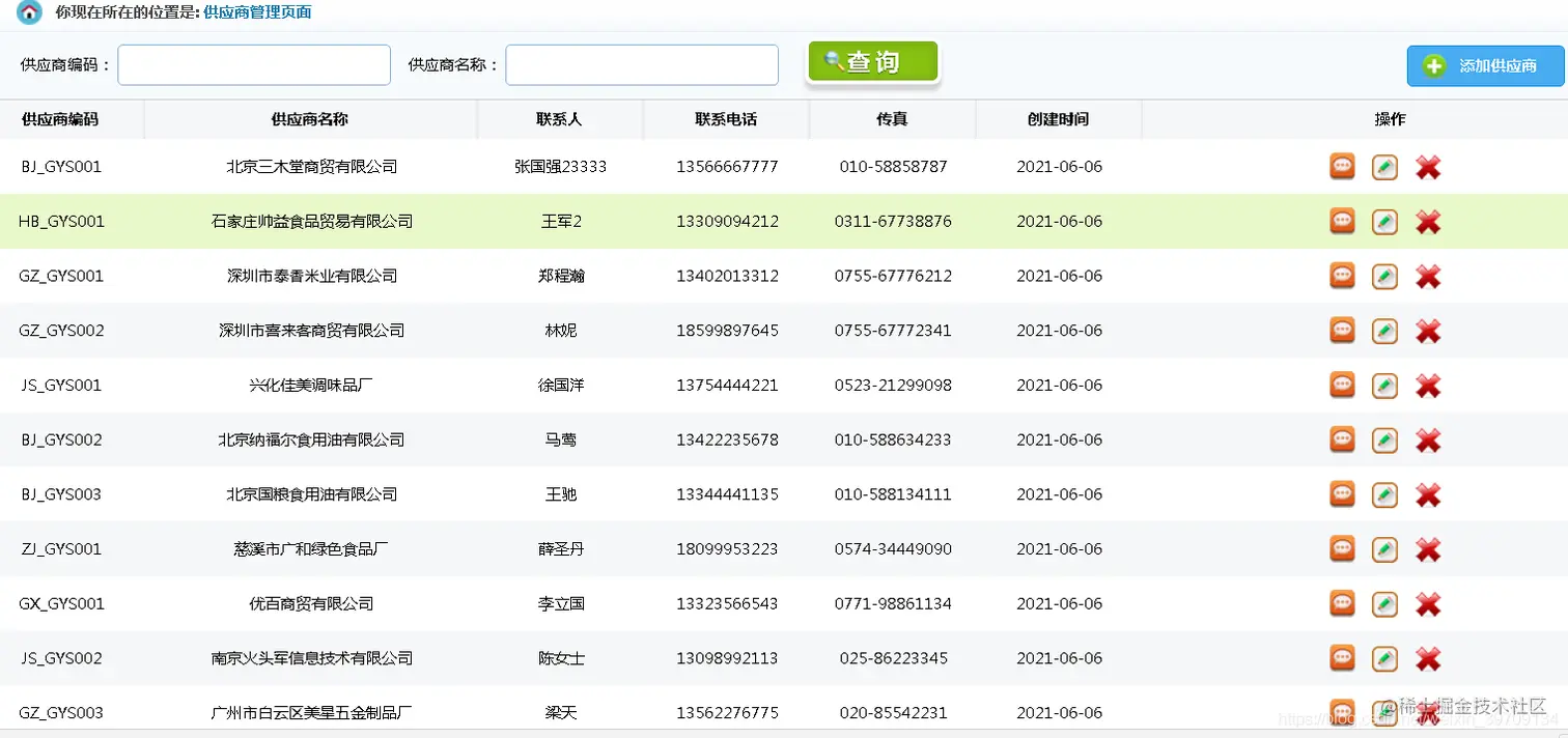 供应商管理:添加供应商、按条件分页查询供应商数据、查看供应商详情、修改供应商数据、删除