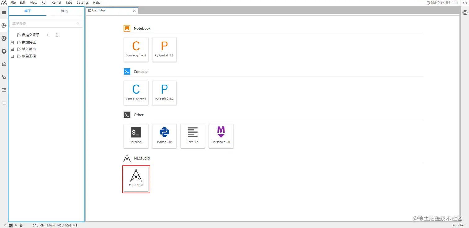 首先,我们进入华为云ModelArts控制台,在开发环境中选择Notebook创建MLS实例(详见“创建并打开基于MLS引擎的Notebook实例”),创建后进入Notebook并点击下图中的红框进入MLS资产开发界面。