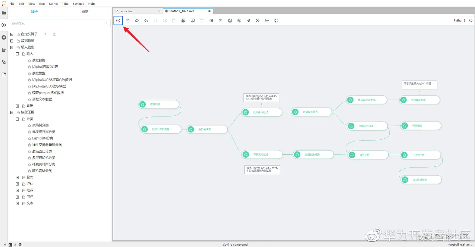 AI Gallery 足球比赛预测案例传输门: