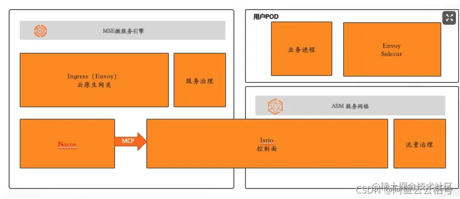 Nacos用户可用通过 MSE + ASM 两个产品快速组合直接进入服务网格时代。ASM 中Istio通过标准 MCP协议跟MSE 中 Nacos打通服务,MSE服务治理基于ASM流量治理原子API 做服务治理,我们的云原生网关也是基于Envoy构建,这样就可以通过Istio标准的控制东西南北流量,进而提升整个微服务高可用能力。