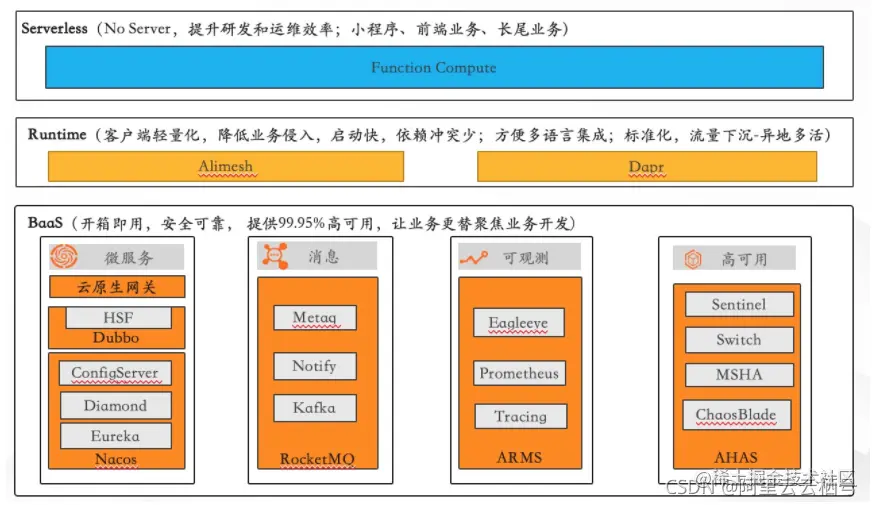阿里巴巴开源、自研、商业化技术三位一体,用公有云支持阿里集团上云,以开源为内核做内部扩展,以商业化为基础做内部定制;后端BaaS化,客户端轻量化,业务侧Serverless化。