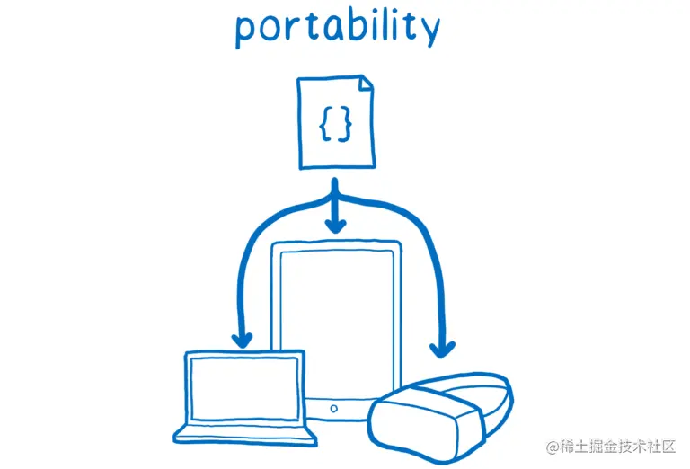 可移植性 —— 将代码交付给用户并使其在可以运行浏览器的任何类型的设备上运行的能力。