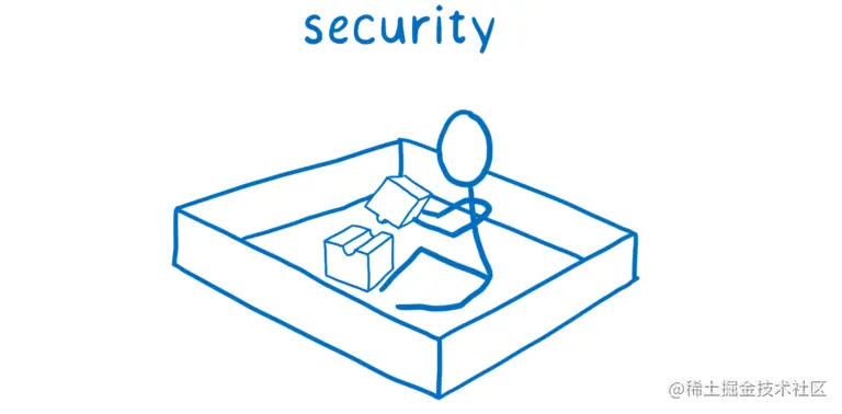 基本上,浏览器获取页面 —— 其他人的代码 —— 而不是让它在你的系统中随意运行,而是将它放在一个沙箱中。它将一些没有危险的玩具放入沙箱中,以便代码可以做一些事情,但它将危险的事情留在沙箱之外。