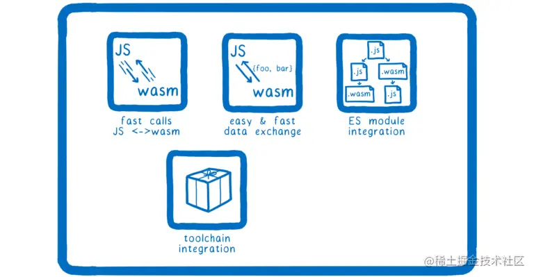我们需要的另一件事是与浏览器内置的 ES 模块支持集成。现在,你使用命令式 API 实例化 WebAssembly 模块。你调用一个函数,它会给你一个模块。