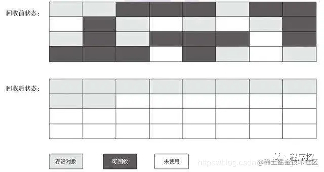 两个不足:一是效率问题,标记和清除的两个过程的效率都不高;另一个是空间问题,标记和清除之后会产生大量不连续的内存碎片,空间碎片较多导致如果需要分配较大对象时,无法找到足够的连续内存而不得不触发另一次的垃圾收集动作