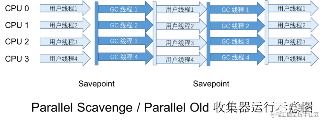 停顿时间越短就越适合需要与用户交互的程序,良好的响应速度能提升用户体验。而 高吞吐量则可以高效率地利用CPU时间,尽快完成程序的运算任务,主要适合 在后台运算而不需要太多交互的任务。Parallel Scavenge收集器提供了两个参数来用于精确控制吞吐量,一是控制最大垃圾收集停顿时间的 -XX:MaxGCPauseMillis参数,二是控制吞吐量大小的 -XX:GCTimeRatio参数。