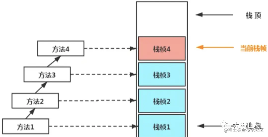 **栈帧,可以认为每一个方法的调用直到执行完成对应这一个栈帧的入栈和出栈的过程