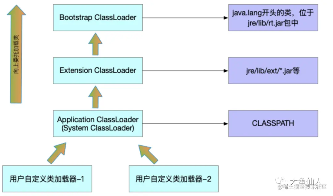 至于双亲委派,我觉得可能很多人都听说过,或者说简单的了解过,大鱼这里也继续给大家啰嗦一下