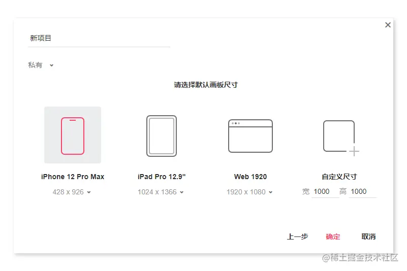 开始画图前,99%的新手都会问:页面尺寸设置多大……而摹客就很好的解决了这个问题,可以根据需要直接选择项目页面大小。