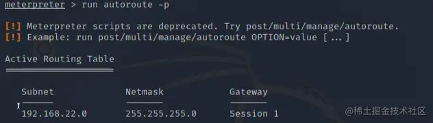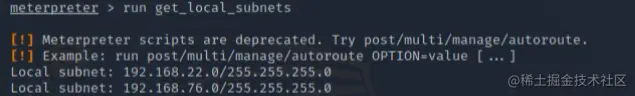 获取网络接口信息,用于判断是否有内网,如下说明还有22网段的内网,于是想办法继续渗透。