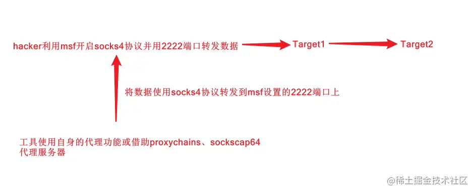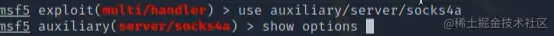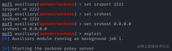 利用 msf 自带的 sock4a 模块,开启2222端口建立socks4a协议