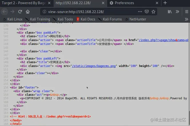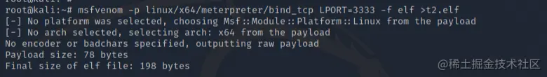 执行t2.elf,攻击成功,此时可以看到是kali指向target2