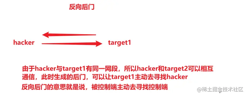 使用msfvenom,生成反向连接后门,让它反弹到msf上,何为反向连接后门?