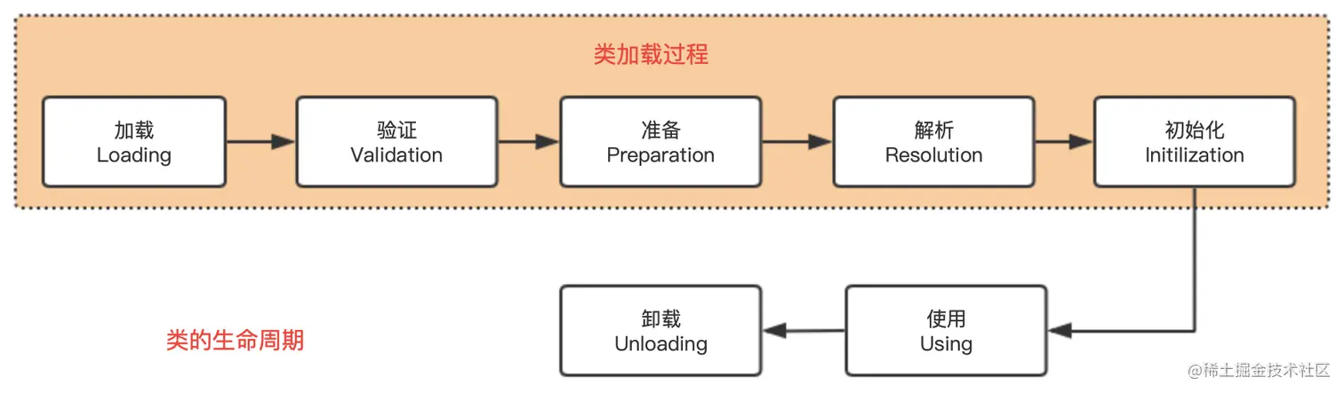 - 连接,连接又包含三块内容:验证、准备、初始化。1)验证,文件格式、元数据、字节码、符号引用验证;2)准备,为类的静态变量分配内存,并将其初始化为默认值;3)解析,把类中的符号引用转换为直接引用