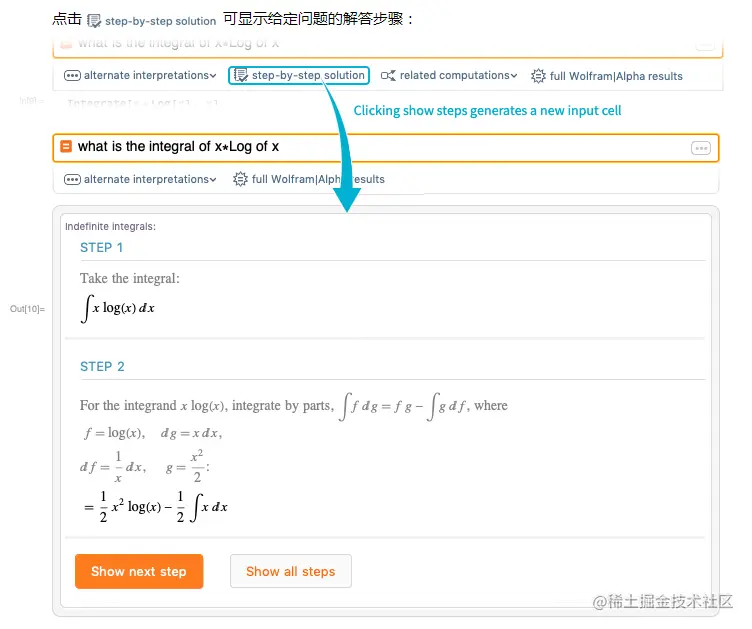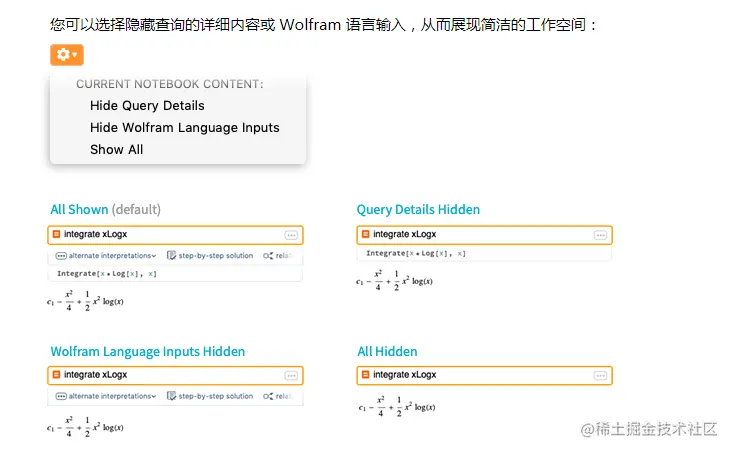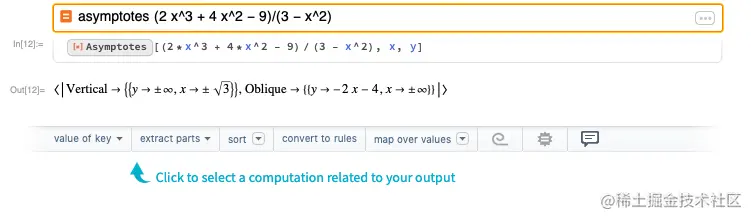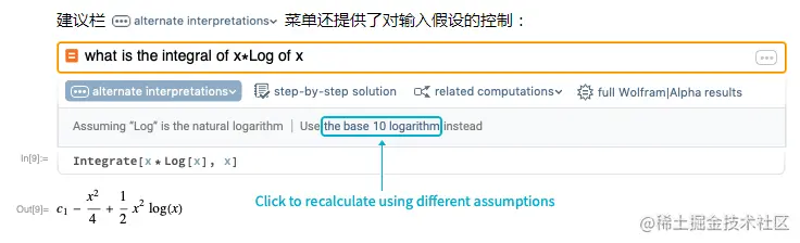 与标准的 Mathematica 笔记本相同,建议栏根据最近的输出给出其他建议: