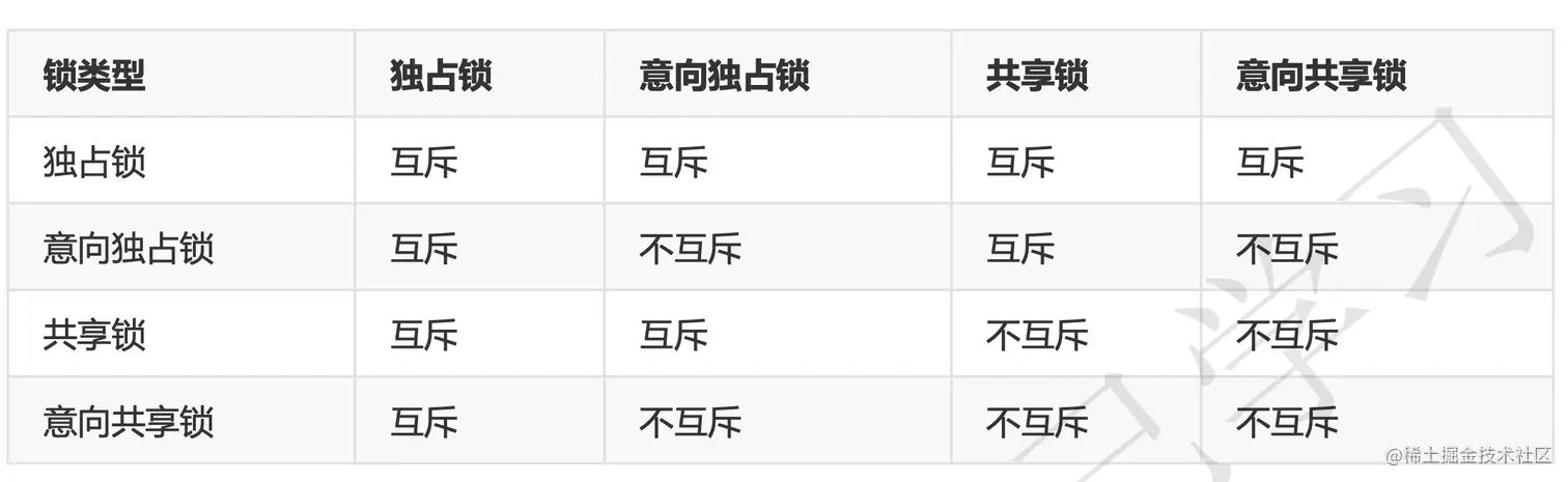 共享锁和独占锁是互斥的,你只能加其中的一个锁。最后我们来看看共享锁和独占锁的互斥问题