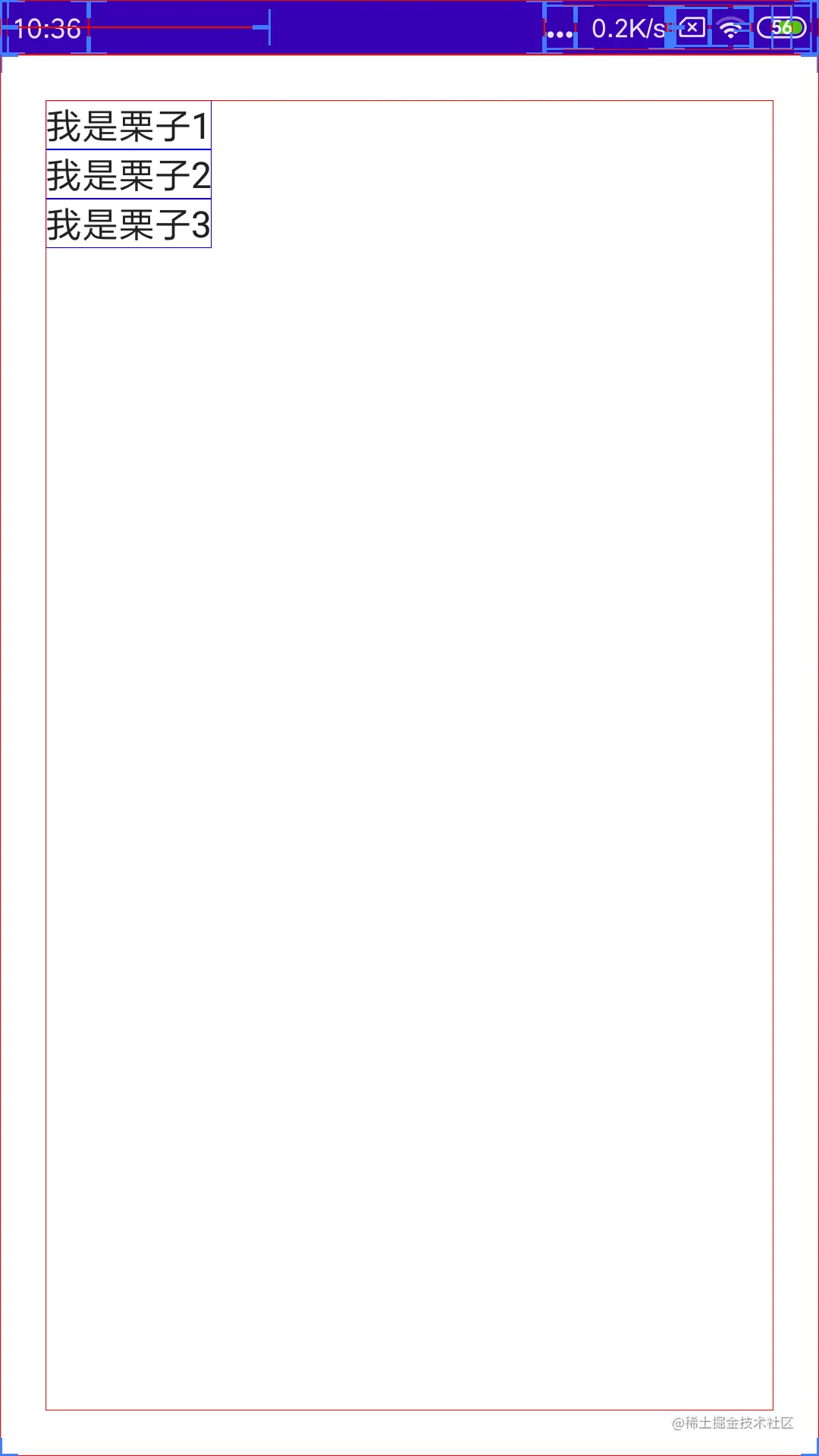 MyOwnColumn 在使用上与 Column 一致,只是占用父布局空间的策略不一样。官方的 Column 布局默认情况下宽高是尽可能小的占用父布局,类似于 wrap_content;而 MyOwnColumn 是尽可能大的占用父布局,类似于 match_parent。下图图6 也可以清楚地看到效果。